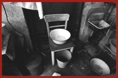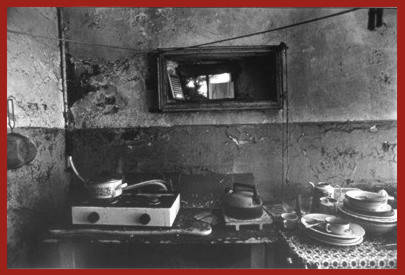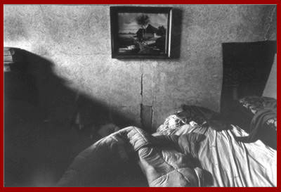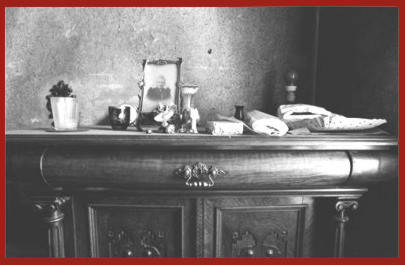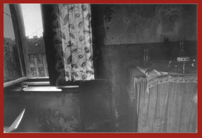 I came in, turned right and started to photograph the scenes of her life; the bed, the desk, the trinkets and photo of her mother, the window, the kitchen, the wash place and back to the door. I moved anti-clockwise around the appartment which was in the form of a long rectangle with one window at the end, one in the kitchen and one tiny one over the sink. I used this form for the exhibiton in Berlin which was called "Rememberances" and was part of a group show in 1996. This show uses the same form.
